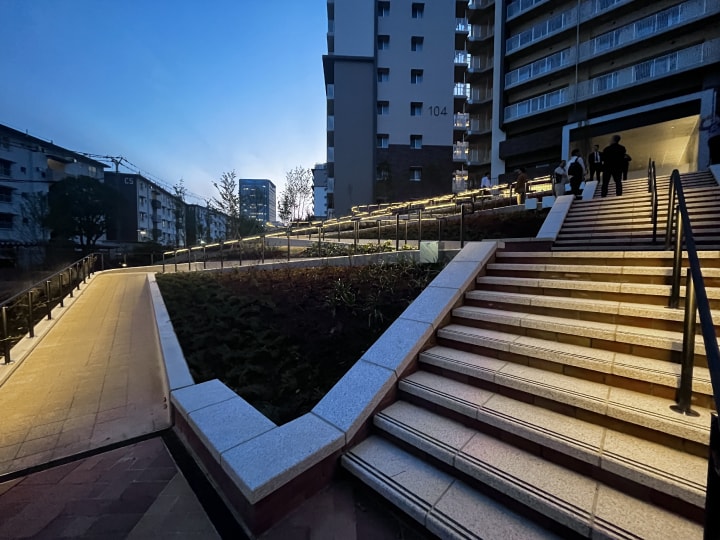Senri Green Hills Higashimachi, part of the long-standing Senri New Town, is a modern redevelopment on the eastern hills. The lighting design integrates architecture, landscape, signage, and wayfinding to enhance both safety and aesthetics. This walkway, next to Senri Green Hills Higashimachi, was developed by Toyonaka City and UR to enhance the local nighttime environment. The lighting design softly highlights bamboo groves and seasonal plants, creating a green corridor that balances between safety and comfort. By cohesively designing the nightscape of the area, we have created a high-quality lighting environment that makes people feel they want to live here – or come back to it.
