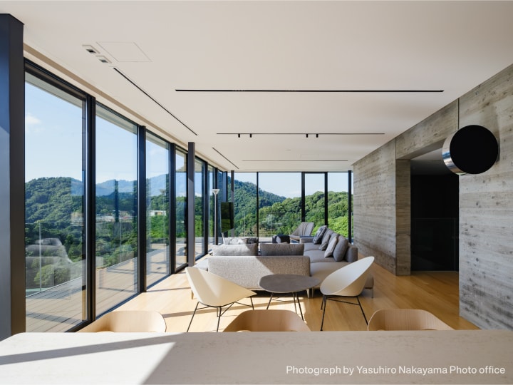 Located in Minamiboso, Chiba, THE MAGARIGAWA CLUB’s Owners’ Paddock features five villa-style buildings along a ridgeline, offering views of the driving course and private garages. The lighting design is carefully planned to harmonize with the natural surroundings, ensuring safety and comfort. Indoors, soft and elegant lighting enhances relaxation. Each garage features customizable lighting, allowing owners to adjust brightness and tone for a personalized experience.