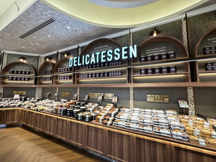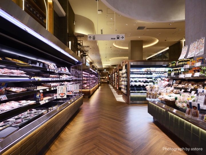 Bon Repas Tumble, newly opened supermarket in KITTE Hakata, features lighting that enhances both everyday comfort and the refined quality of food. Soft, well-balanced illumination highlights the carefully curated products, creating a pleasant and inviting shopping experience. By carefully adjusting brightness and light distribution across aisles and displays, the design creates a natural flow and a calm, composed atmosphere. Rather than relying solely on brightness, it strikes a balance between tranquility and cleanliness, reinforcing the sophisticated identity that defines the Bon Repas brand.