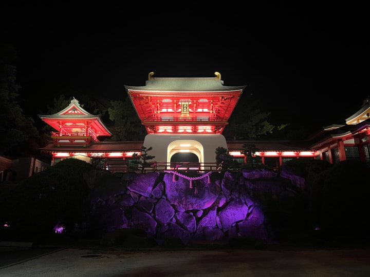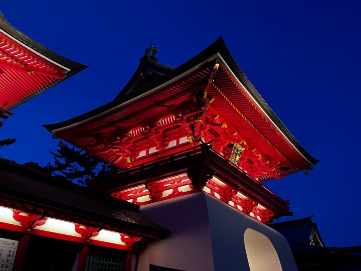 Akama Shrine and Sino-Japanese Peace Memorial Hall overlook the Kanmon Strait, a key site in Japanese history. The lighting design highlights the shrine’s vivid Ryugu-style architecture and the hall’s refined traditional design. It enhances the grandeur of the shrine and emphasizes the hall’s historical presence, creating a reflective nighttime atmosphere. As a key point in Shimonoseki’s “Corridor of Light,” this project contributes significantly to the city’s scenic nightscape.